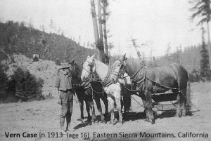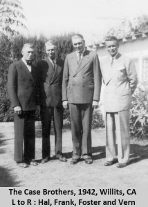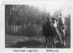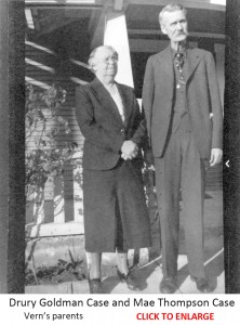 Vern Case did not always ride in limousines or shop at Saks. He was born January 15, 1897, in Orange County, CA. He was the third of four sons of Drury (Dru) Goldman Case and May Irene Thompson, both born and raised in Willits, a small farming town eighty miles north of San Francisco. For those into the ponies, the great racehorse Seabiscuit was put out to stud in Willits when he retired from racing in 1940.