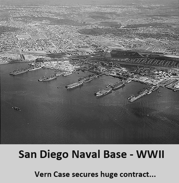 Thanks to the earthquake, Case Construction flourished, expanded into marine construction (dredging, piers, wharfs and jetties) and worked the entire west coast from San Diego to Bremerton, Washington. At the end of its first year of operations in 1932, the company had total assets of $28,736 and profits of $1,938. In 1943, eleven years later, Case boasted assets of $1,122,685, annual profits of $497,626 and a net worth of $750,000. And that’s 1943 dollars!That year the company also secured a mammoth job from the Navy to dredge a deep water channel in San Diego Bay so the large World War II warships could navigate inside those protected waters.
