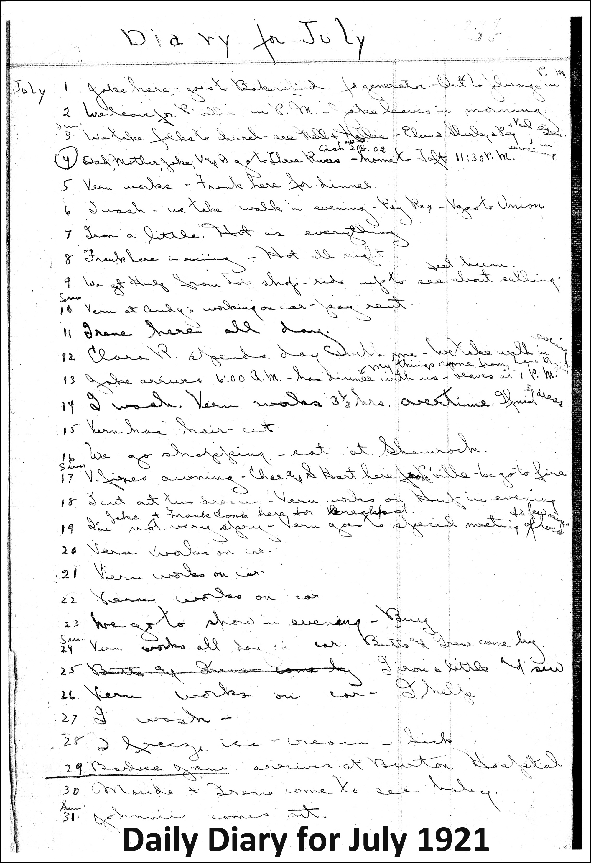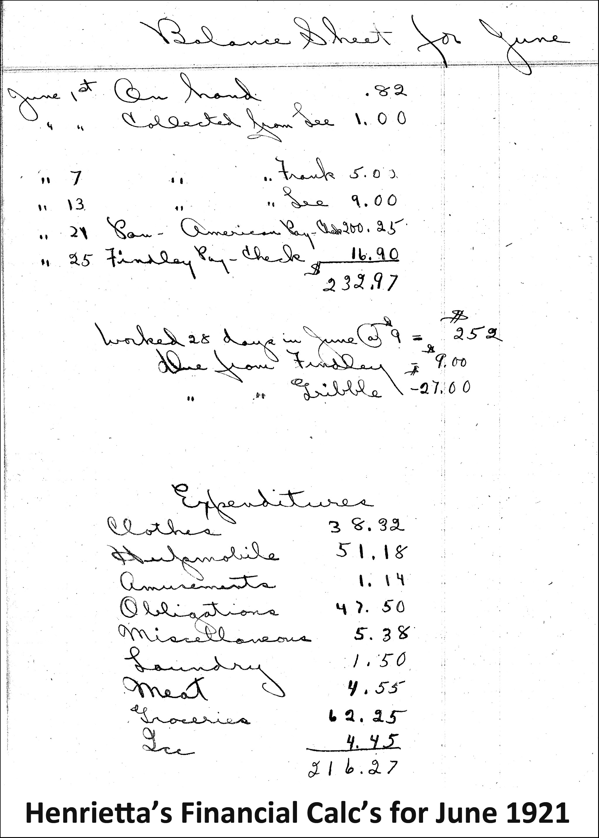 Their first child, Barbara Jane, my mother, was born in Taft in 1921. The young family was getting by, but only by the skin of their teeth. Henrietta religiously kept a daily journal and itemized very dollar Vern brought in from his work in the oil fields and what she made from part-time teaching. Her journal reflects that at June 1,1921 they had $0.82 cash on hand—eighty-two cents— Vern worked 28 days that month at $9 per day, bringing in $252, and they spent $216.27, including $.25 every day for ice. So that was a pretty good month. But shortly after Barbara’s birth, Vern was laid off and he headed to Los Angeles to look for work. Within a few weeks he found something and sent Henrietta some money, a blanket and bonnet for his “Barby,” and they boarded a train to reunite with him.